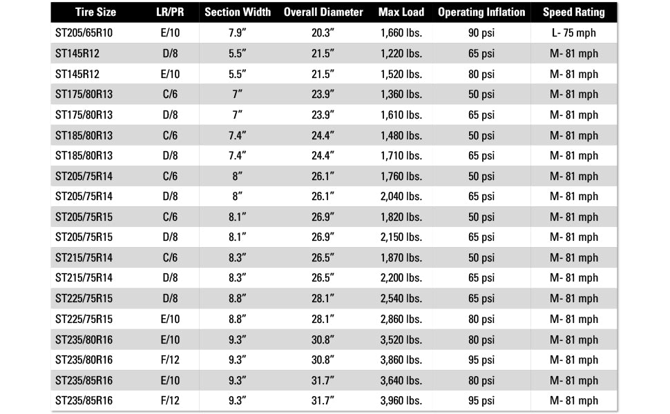 This high quality trailer tire features a 6 year limited warranty with roadside assistance for peace of mind. The Rainier ST was designed with original equipment manufacturers in mind. With a light truck inspired tread pattern, added durability, high load capacity, and can withstand the rigorous demands of ST tires.