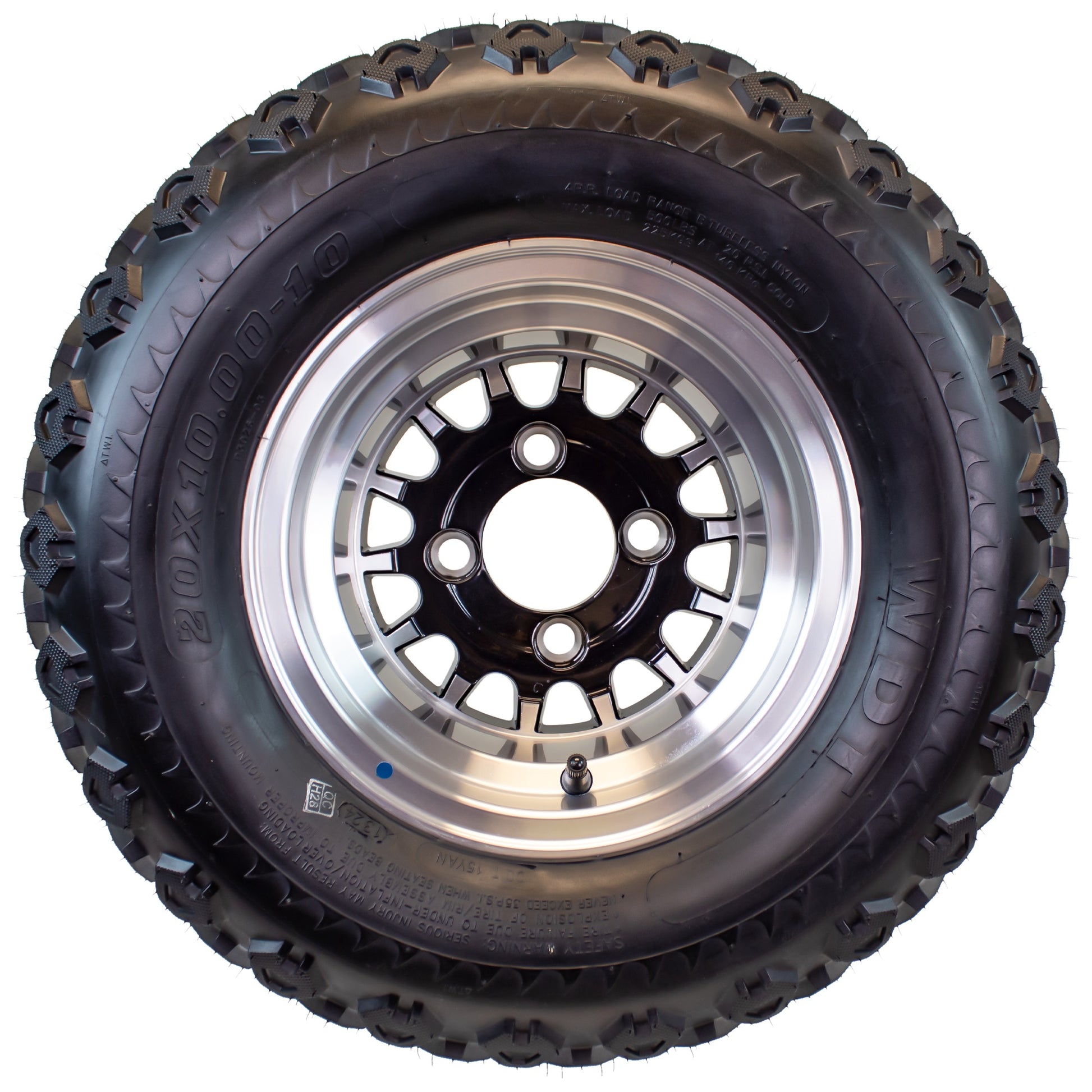 4-Pk 20X10.00-10 Golf Cart ATV Offroad Tire 10X7 Gloss Black Rim A4 All Terrain