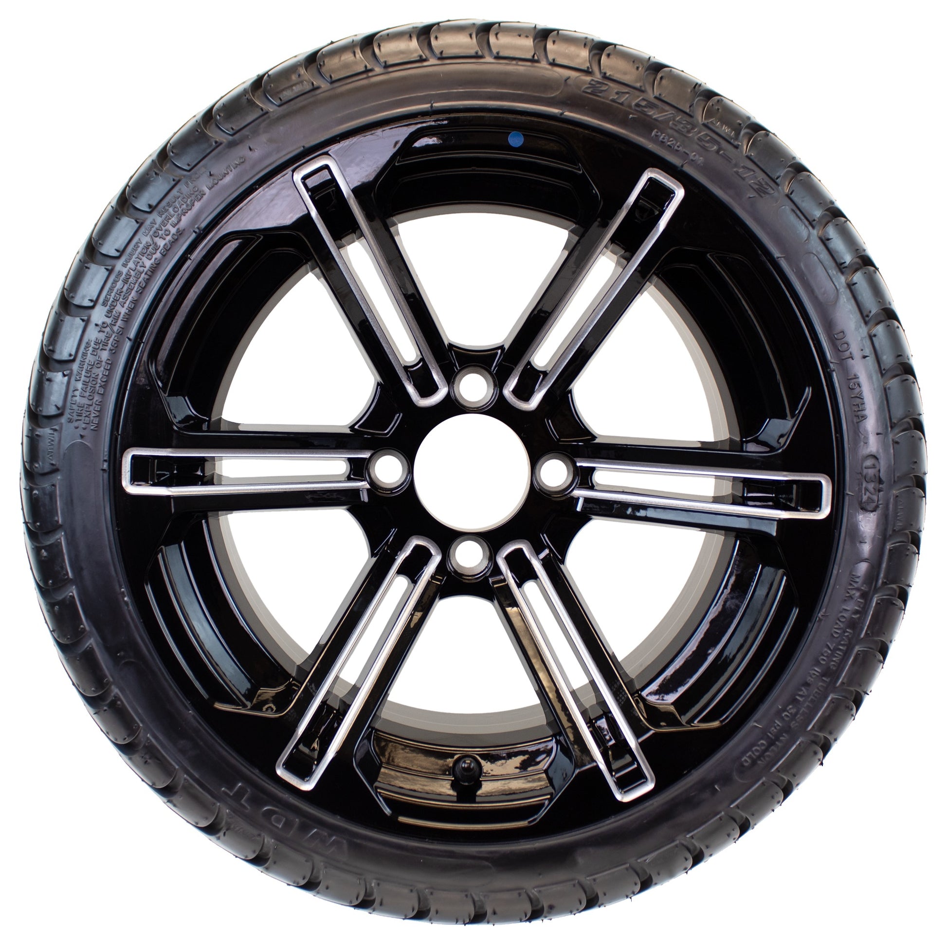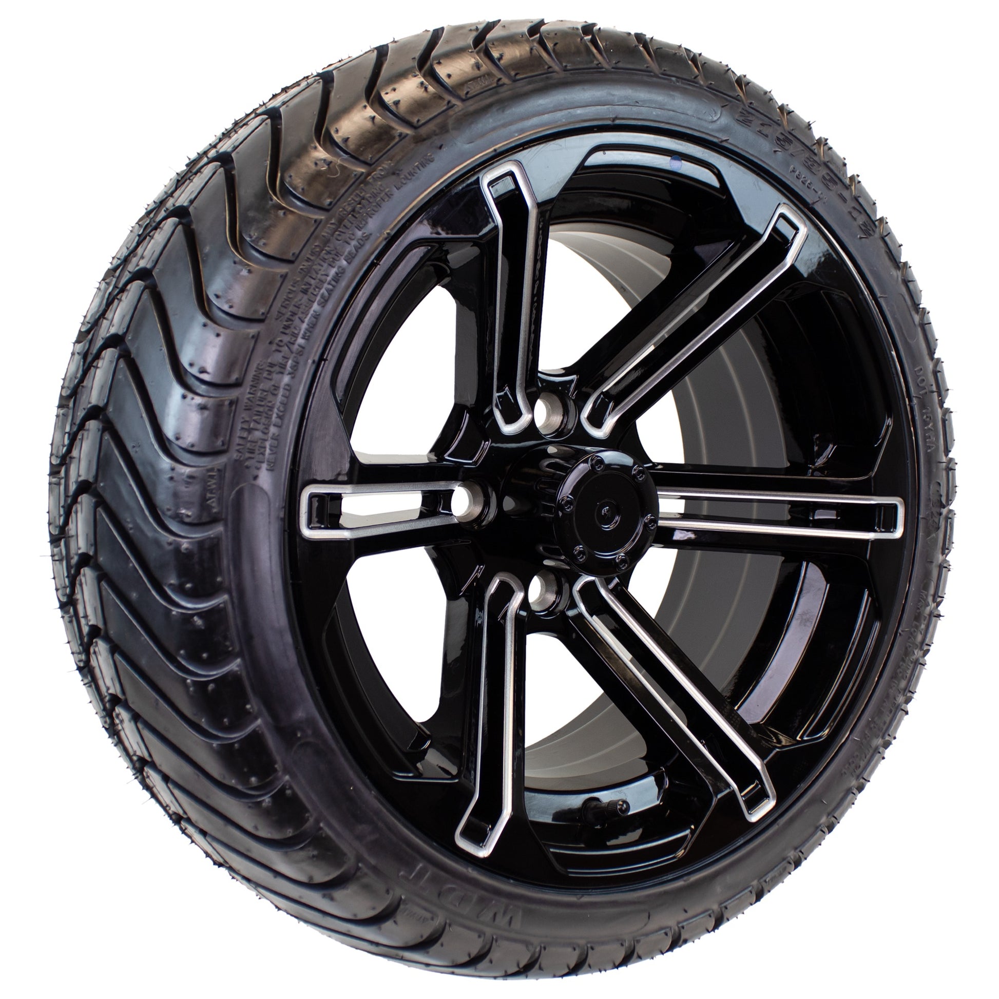 4-Pk 215/35-12 Trailer Golf Cart ATV Offroad Tire On 12X7 Gloss Black Rim B3