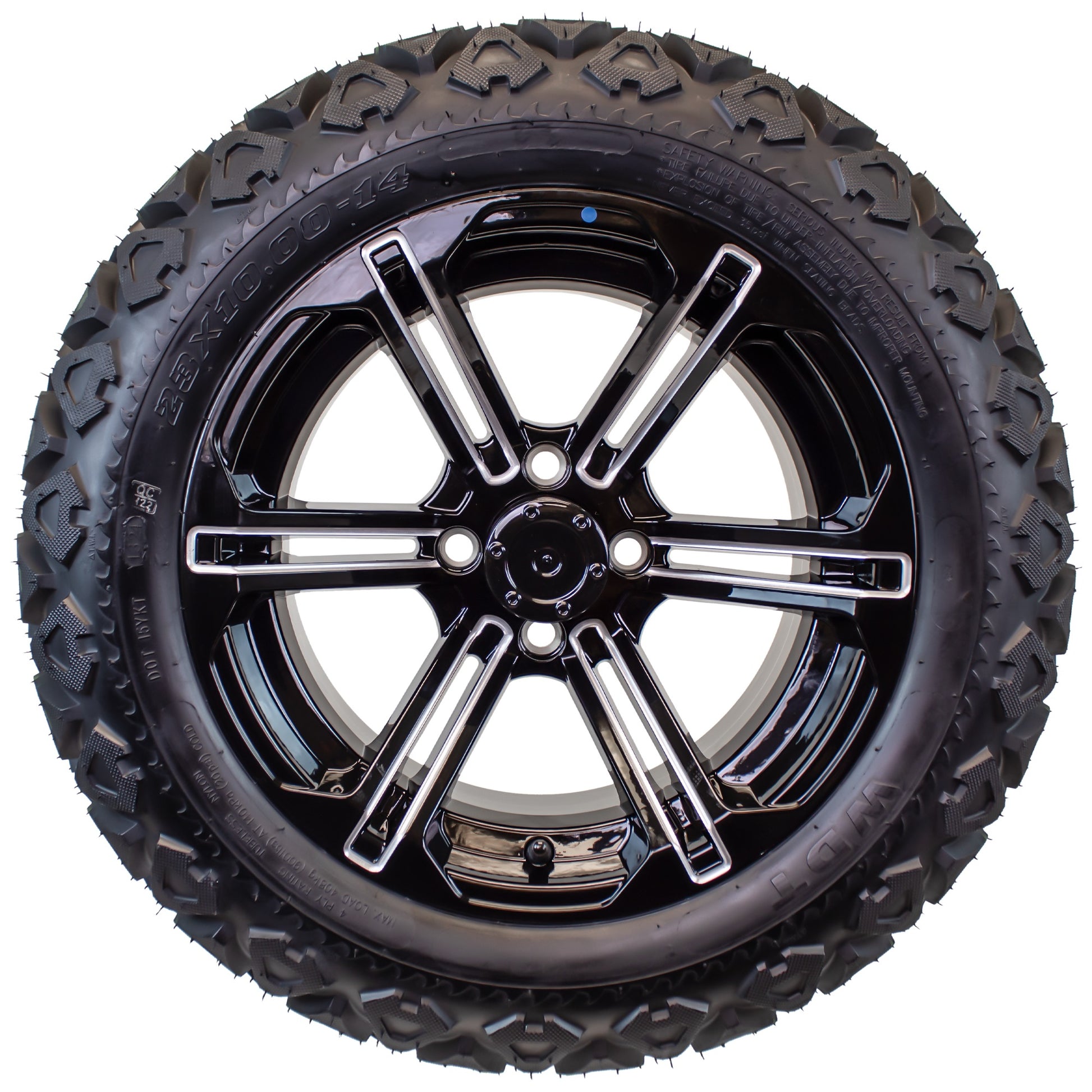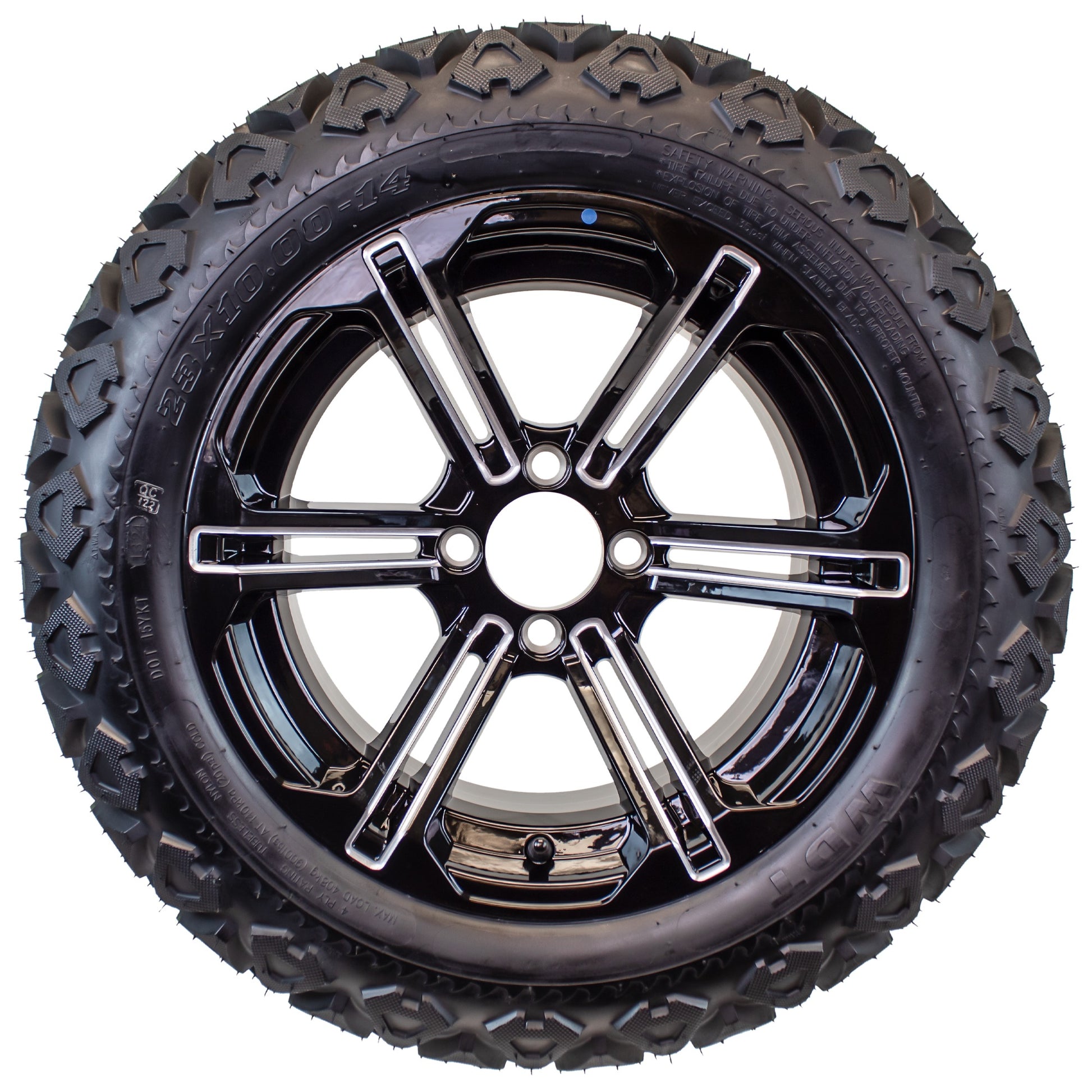23X10.00-14 Golf Cart ATV Offroad Tire 14X7 Gloss Black Rim B6 All Terrain