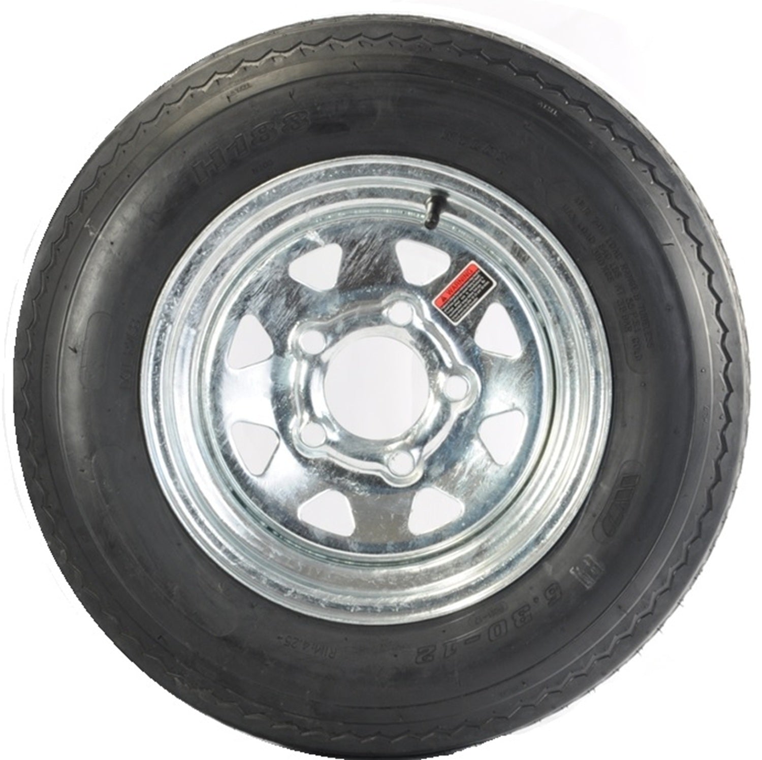 - Trailer Tire & Rim Bias Ply 530-12 Load B 5 Lug On 4.5" Galvanized Spoke 12"