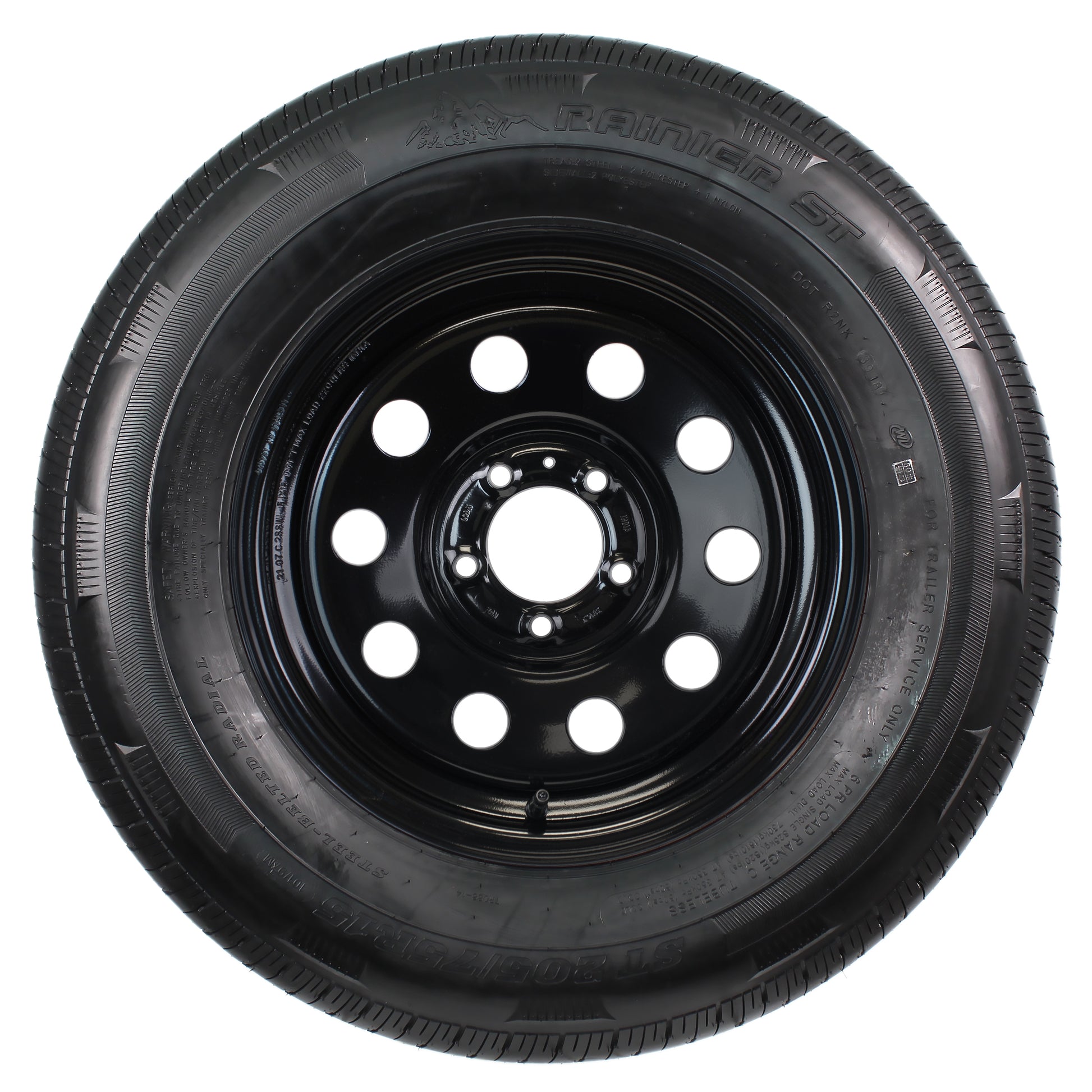 • Trailer Tire & Rim Radial 205/75R15 Load C 5 Lug On 4.5" Black Modular 15"
