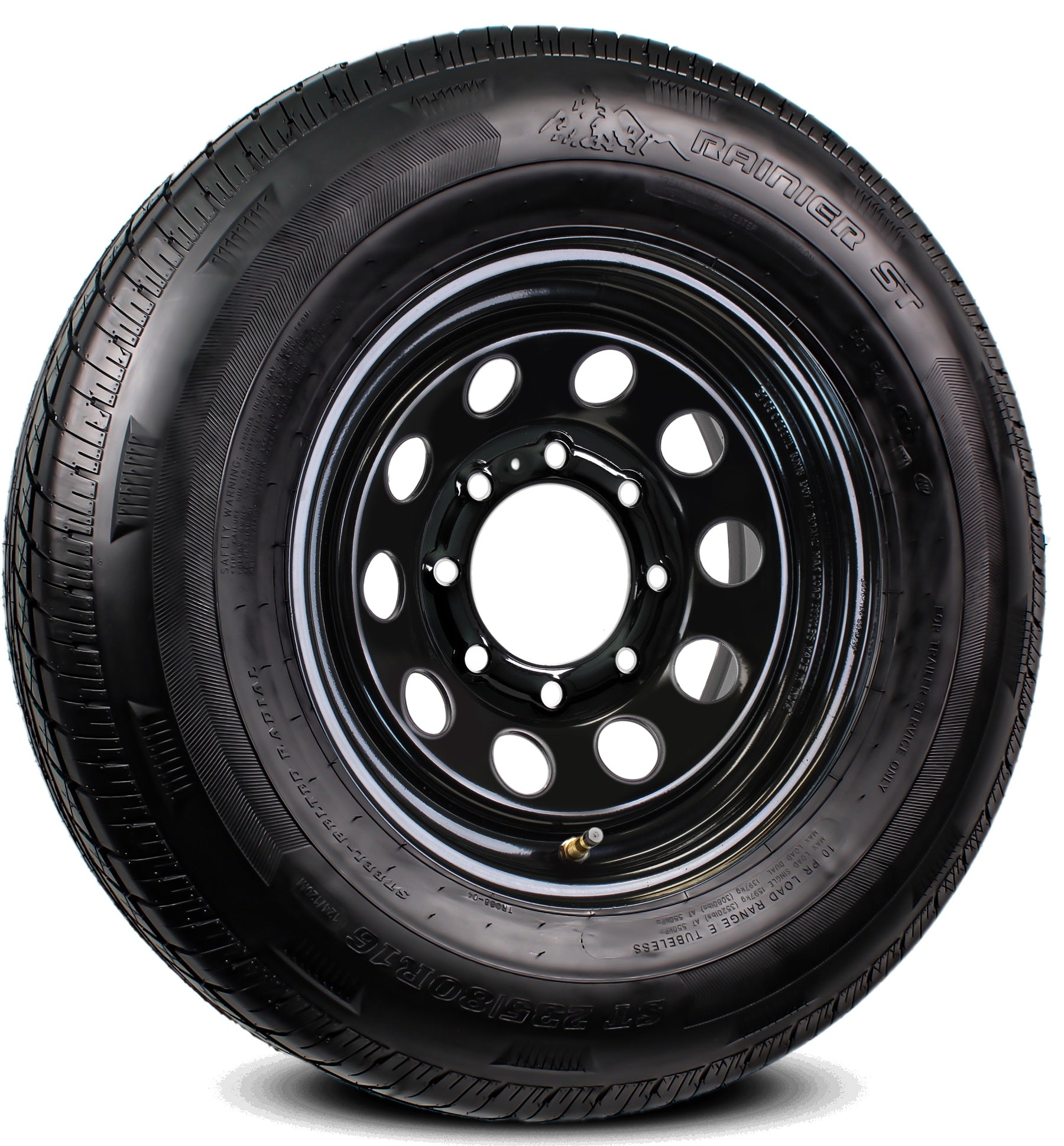 - Trailer Tire & Rim Radial 235/80R16 Load Range E 8 Lug On 6.5" Black Modular 16"