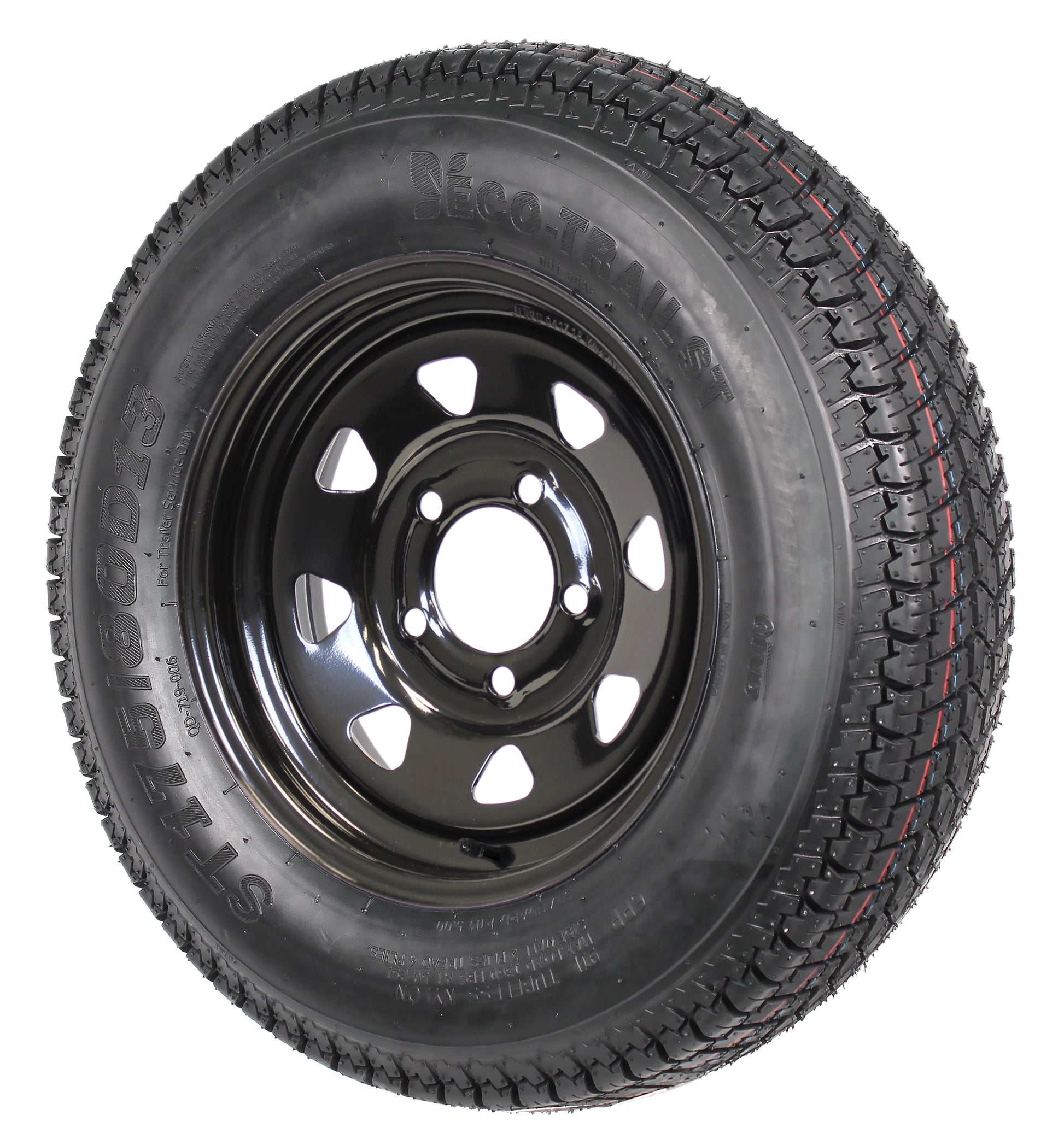 • Trailer Tire & Rim Bias Ply 175/80D13 Load C 5 Lug On 4.5" Black Spoke 13"