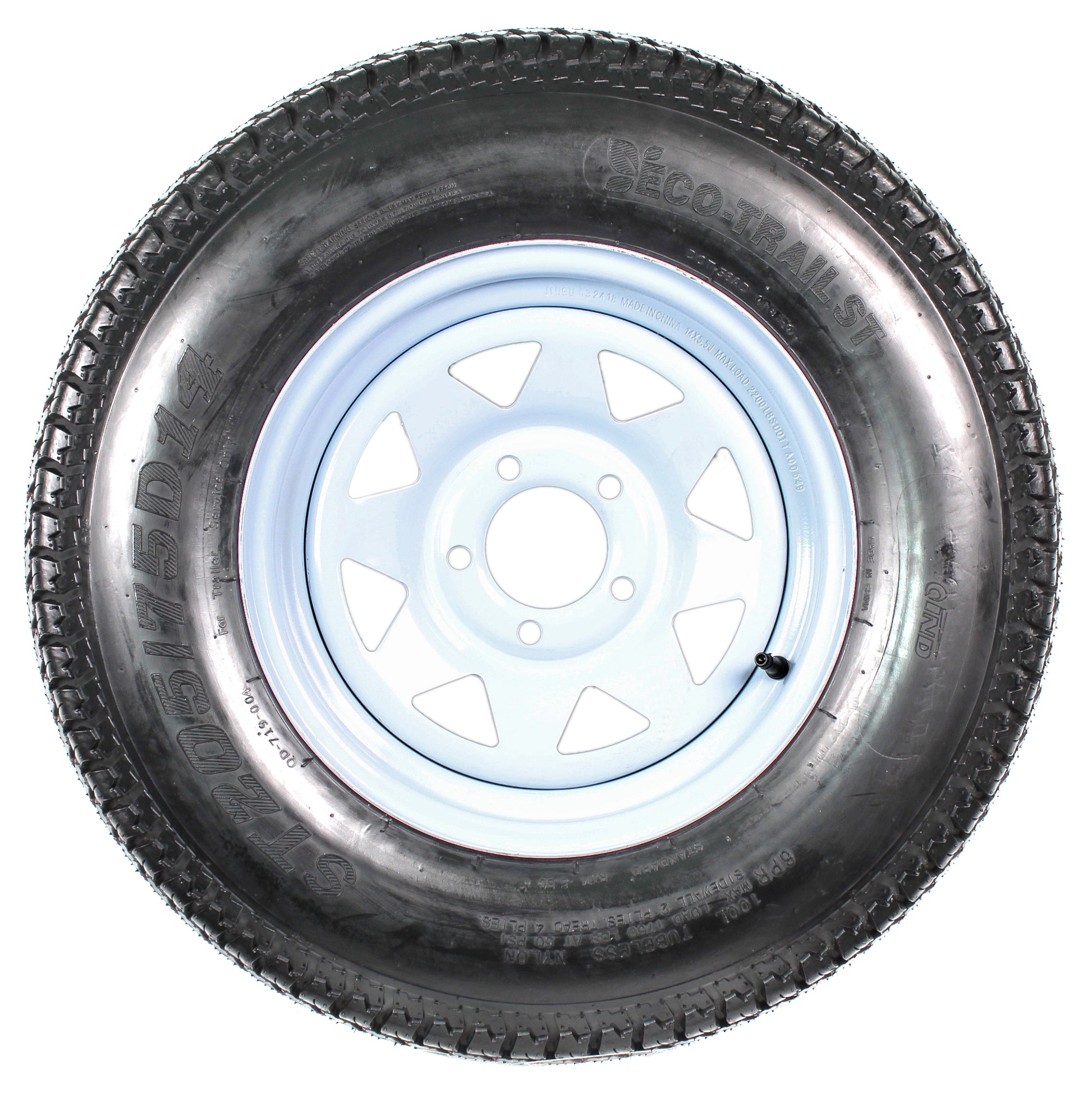 - Trailer Tire & Rim Bias Ply 205/75D14 Load C 5 Lug On 4.5" White Spoke 14"
