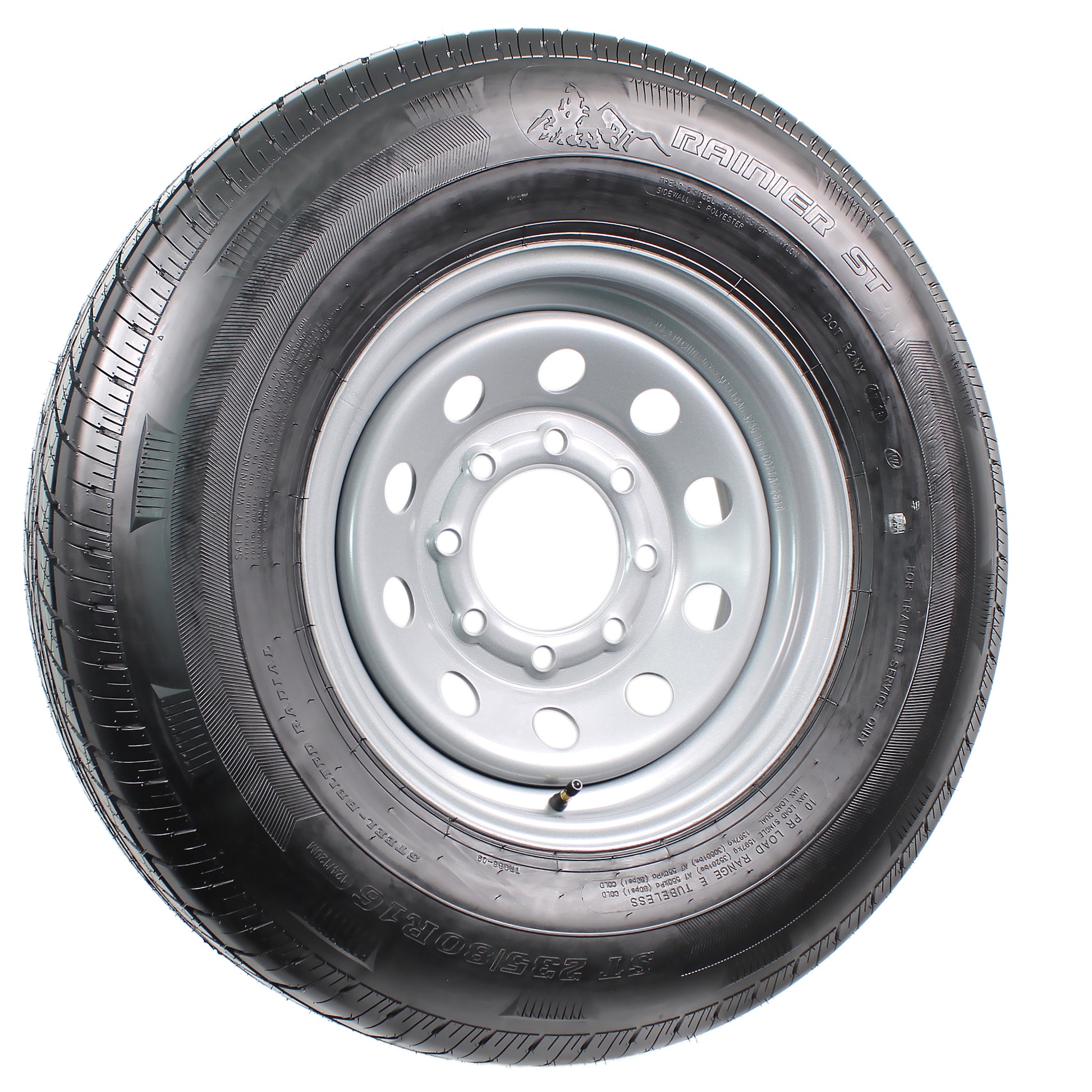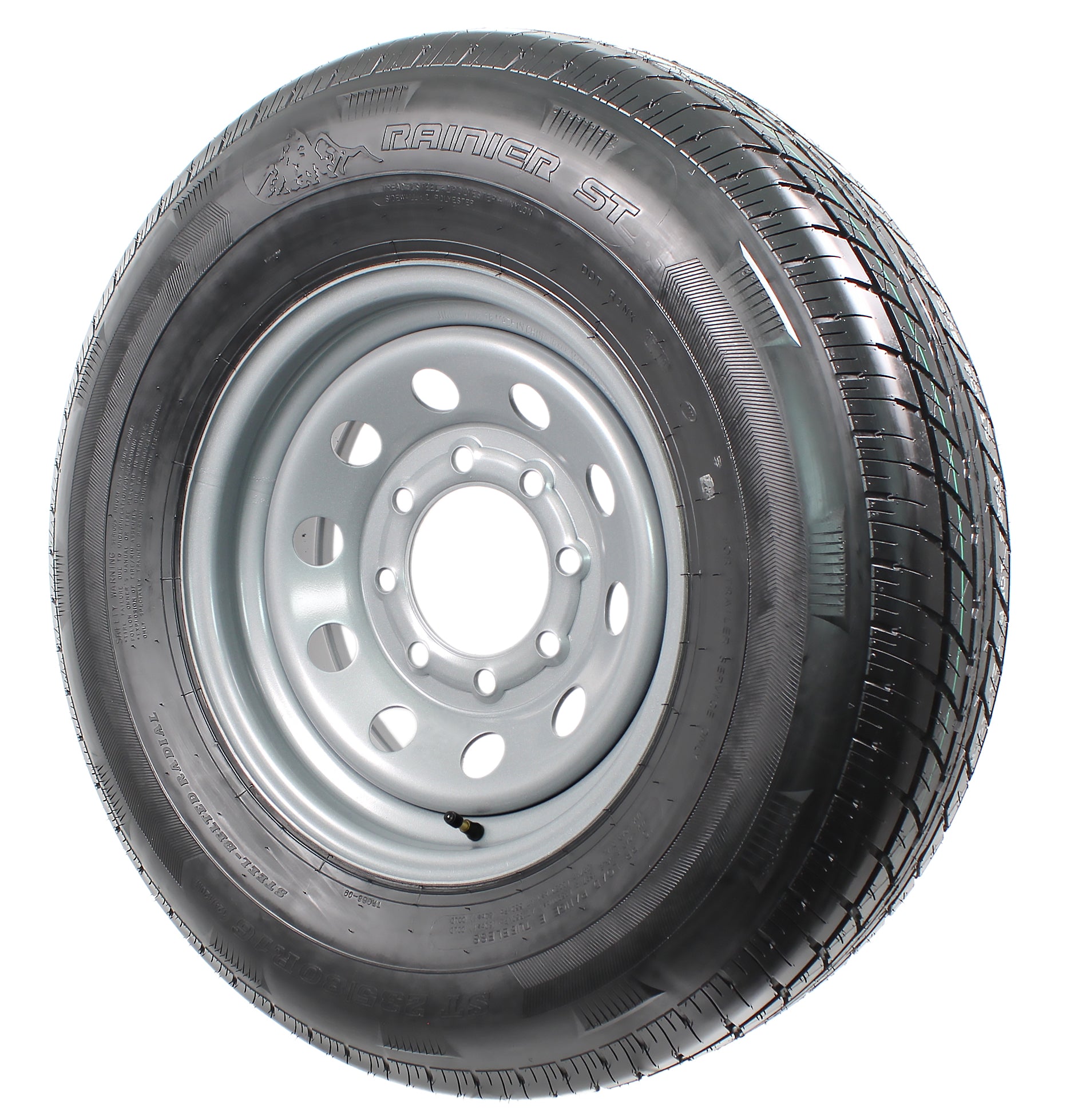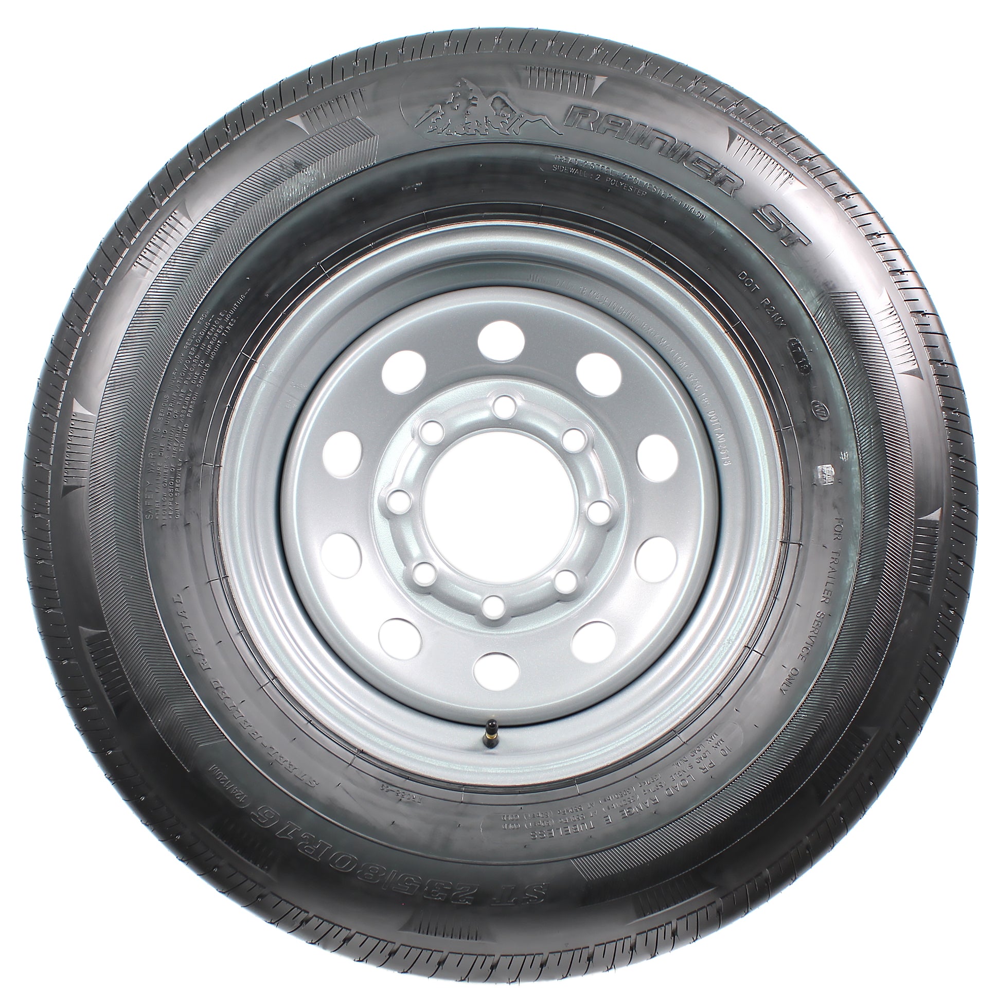 - Trailer Tire & Rim Radial 235/80R16 Load E 8 Lug On 6.5" Silver Modular 16"